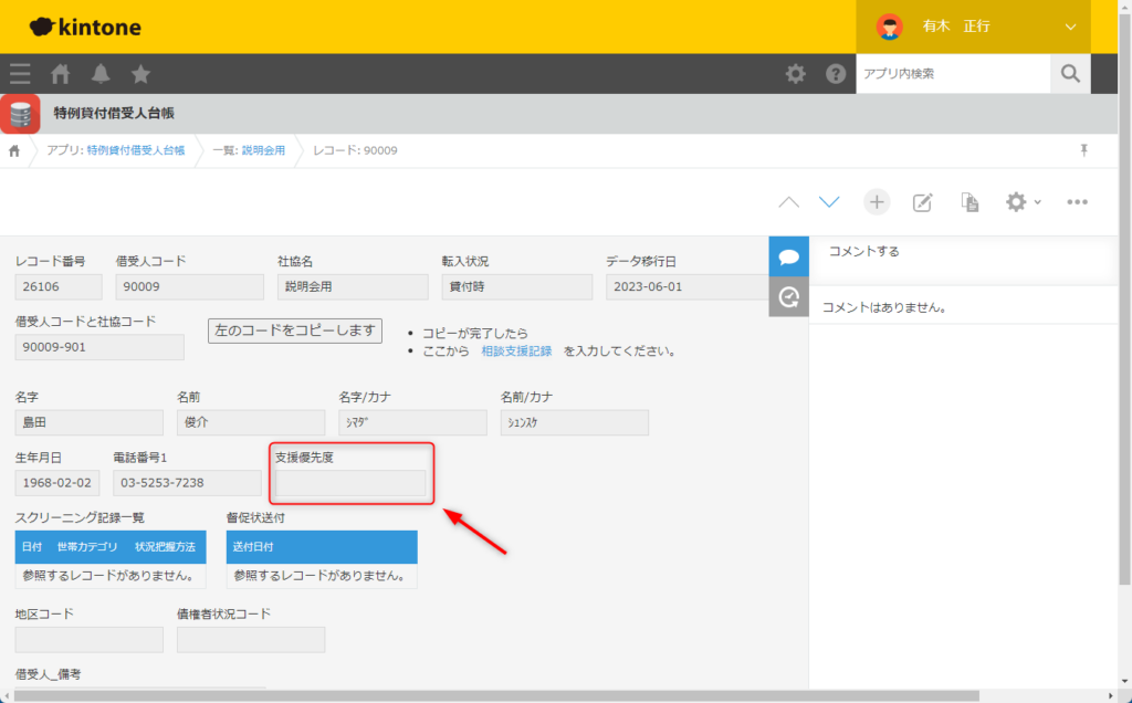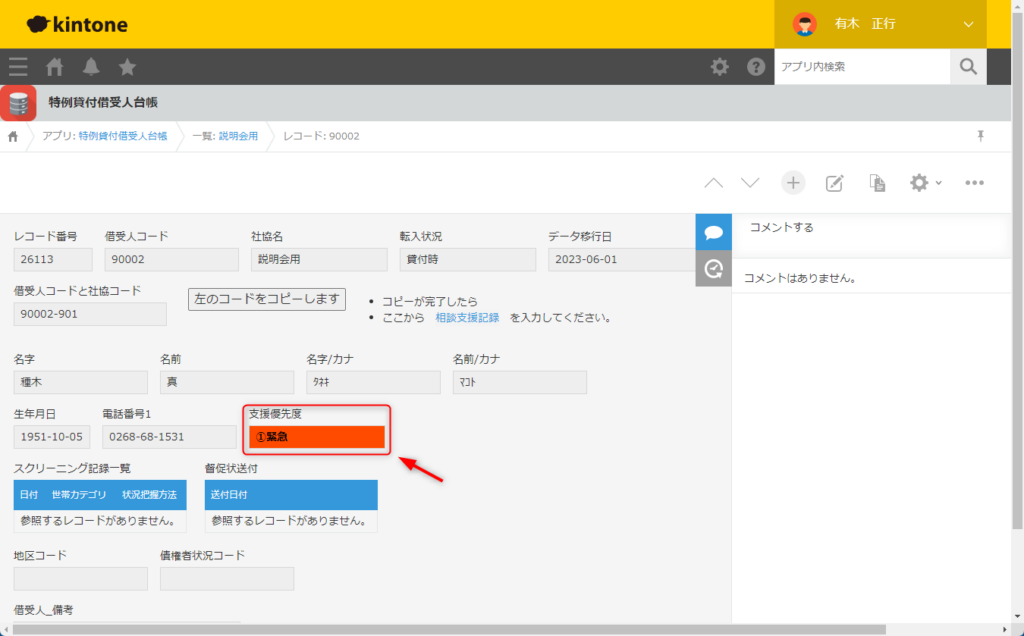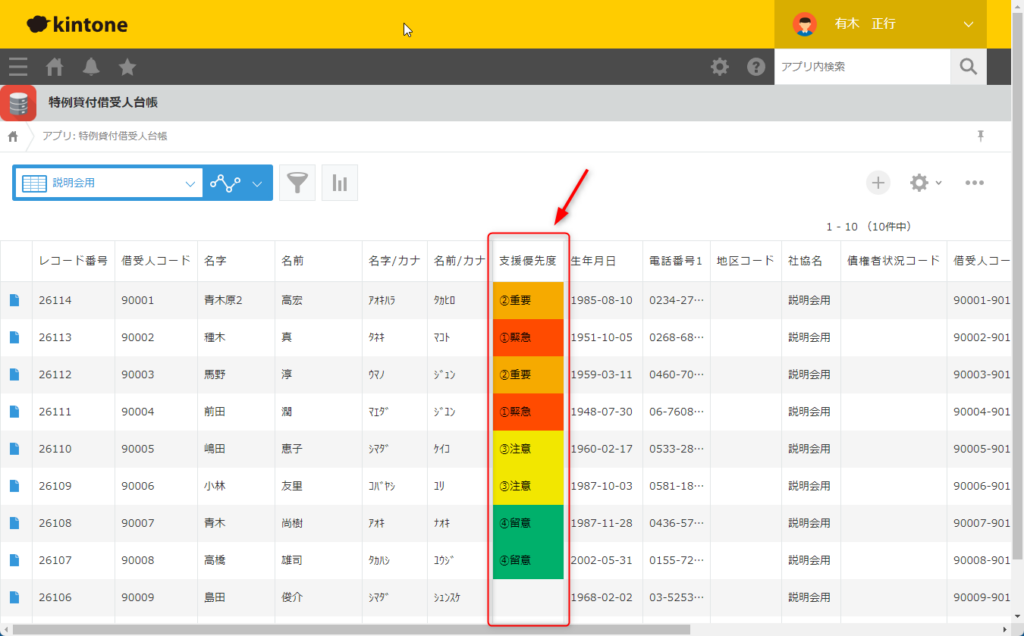支援が必要な借受人の方への優先度を管理するフラグ(目印)としてご利用ください。